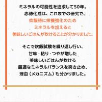 ミネラルで美味しいごはんが炊けることを突き止め、最適なミネラルバランス(マグネシウムとナトリウム)に仕上げました。健康と美味しさの両方を叶えます。
