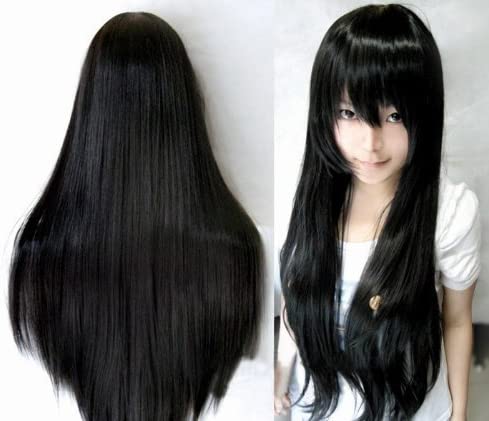 ストレート ロング ウィッグ コスチューム用小物 黒 フリーサイズ 80cm ハロウィン