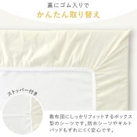 敷布団にぴったりフィットする綿素材のシーツです。ゴム付きなので取り換えが簡単!更にストッパーが付いているので、ずれにくく安心です。