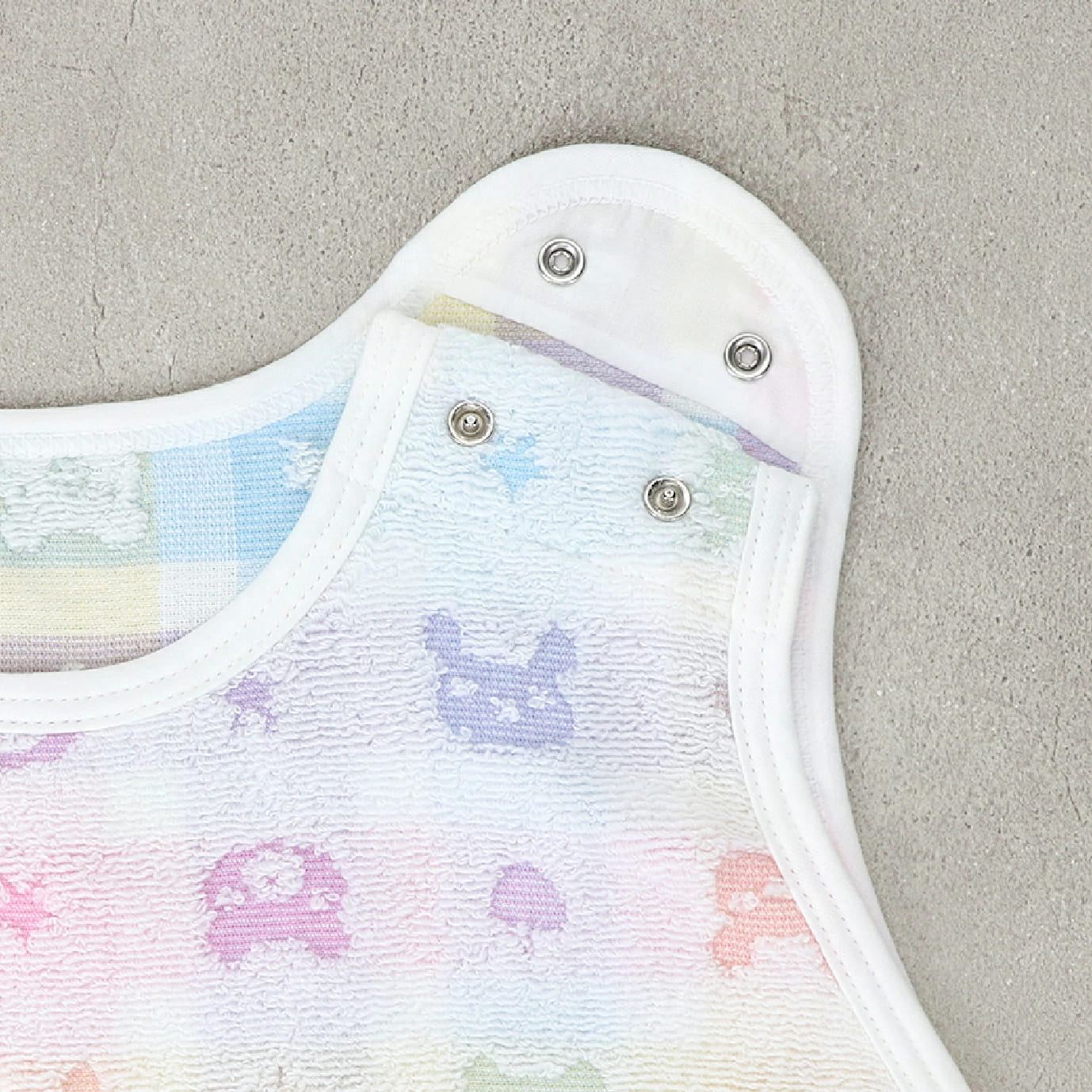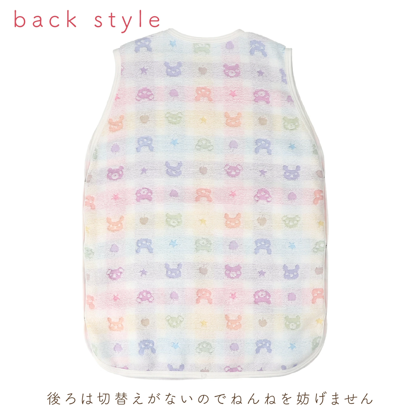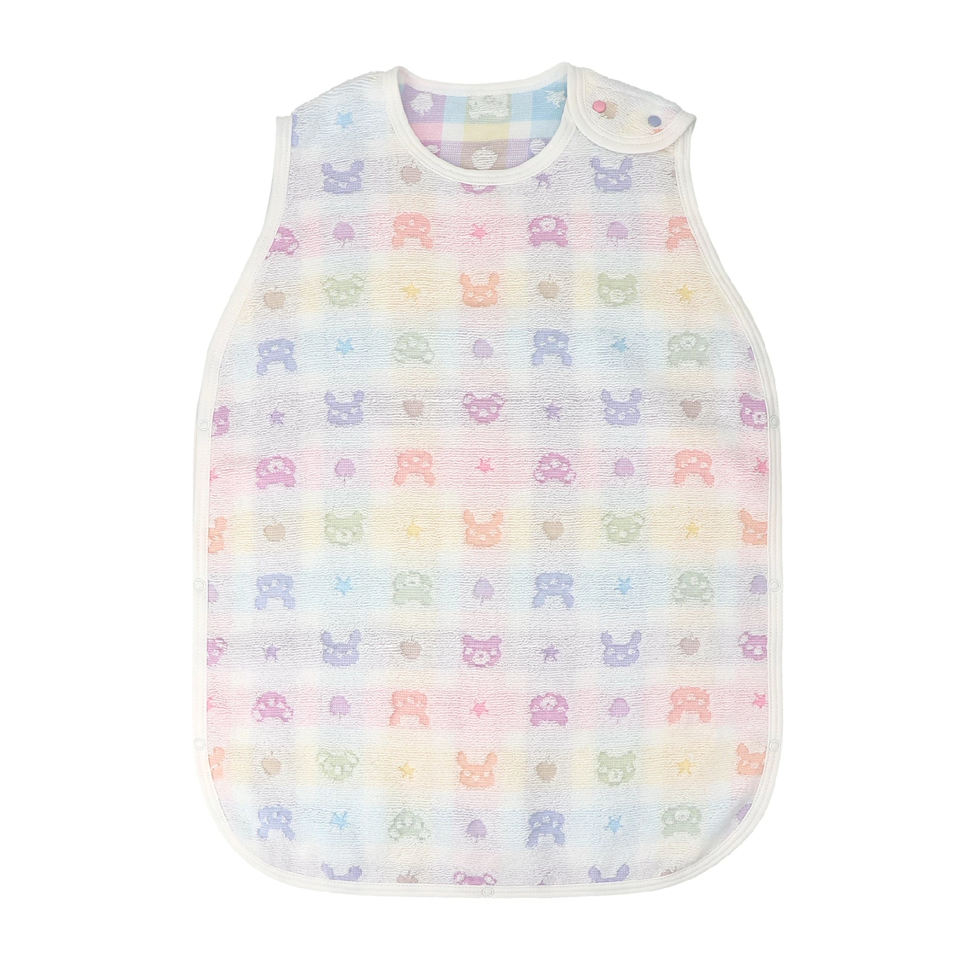 ふんわりとした肌ざわりのスリーパーです。無撚糸タオルジャカードは糸の撚りがやわらかく吸湿性・吸水性にすぐれています。少し薄手なので春夏におすすめです。おなかが出ないので、寝冷え対策に最適。両脇と肩が開くので、寝かせたままの着せ替えもスムーズにできます。