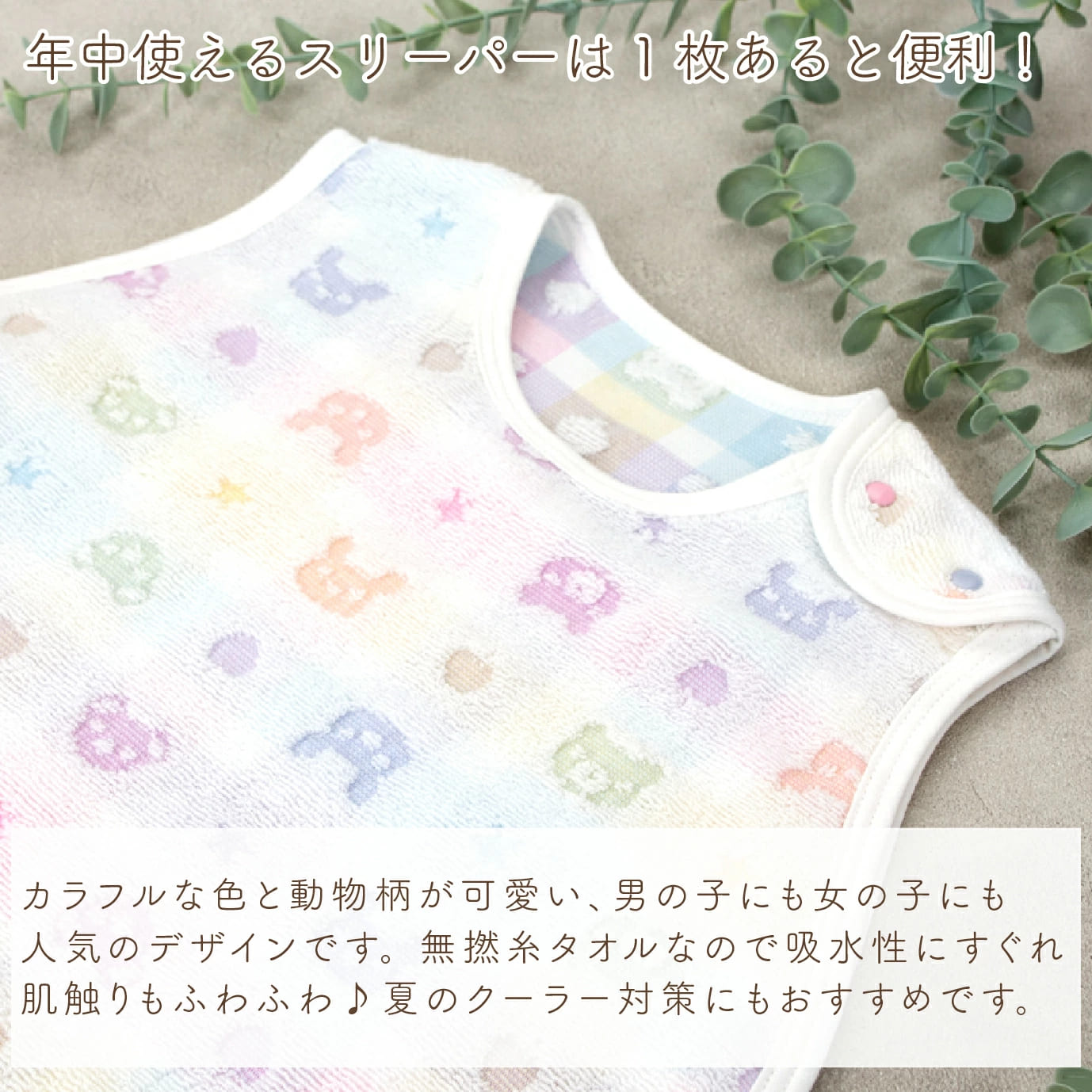 スリーパー 日本製 タオル パイル カラフル ねんね 春 夏 秋 冬 動物 出産祝い 出産準備 カラフルパイル