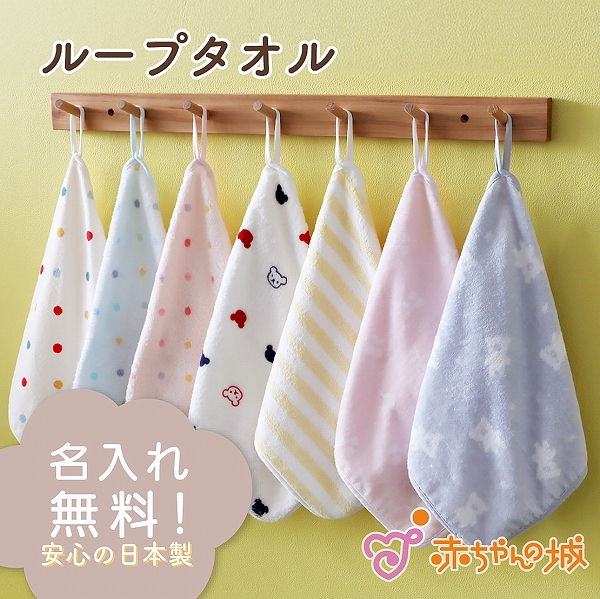 ループ付きタオル 名入れ無料 日本製 名入れ刺繍 2枚 3枚 保育園タオル 34×34cm 保育園 子供 オリジナル ギフト プレゼント 贈り物 ハンドタオル ループタオル