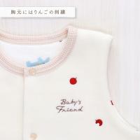 | 赤いりんごが大好き。元気いっぱいぞうさんが横からひょっこり顔を出しているので、思わずお母さんもにっこりしてしまう可愛らしいベストです。フリースと接結の2枚合わせになっているので、軽いのにとてもあったか。肌寒いお出掛けの日に是非ご活用ください。 |
