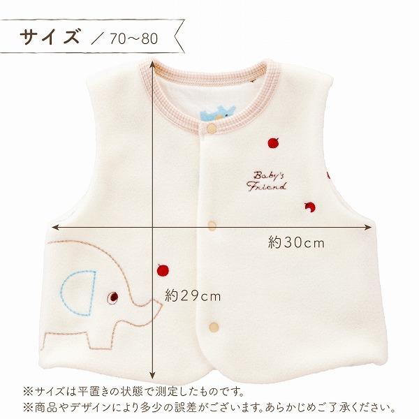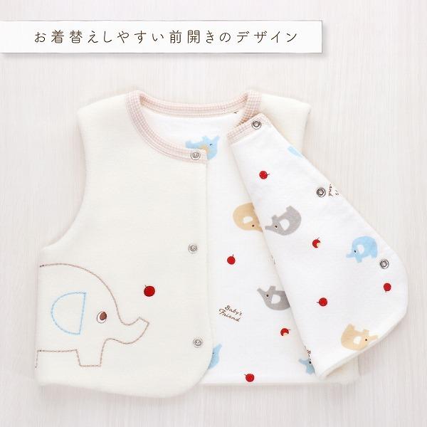 ベスト 赤ちゃん ベビーベスト 日本製 70〜80 秋 冬 ぞうさん 新生児 アイボリー 男の子 女の子 羽織り 羽織物 出産祝い 赤ちゃんの城