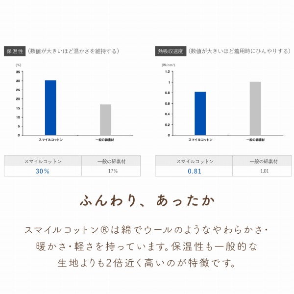 表・裏:綿100%(スマイルコットン)、中わた:ポリエステル100%