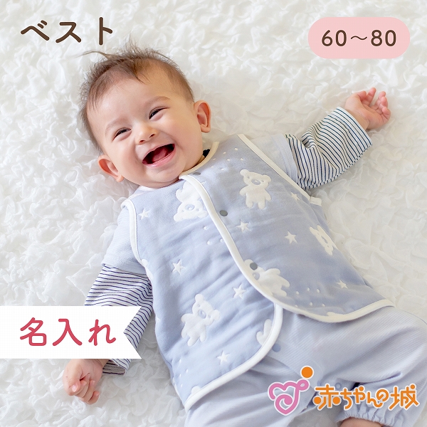 ベスト 赤ちゃん 新生児 6重ガーゼ 日本製 ベスト 六重ガーゼ スターベア 綿100% 春 夏 秋 冬 オールシーズン 男の子 女の子 出産祝い 羽織物