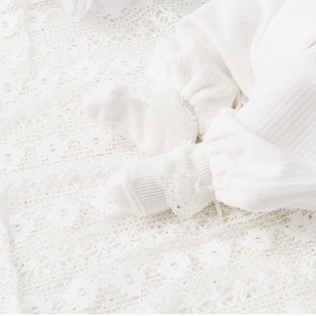 | 上品でかわいいレースとリボンが付いたかわいいベビーソックスで足元を華やかにドレスアップします。エレガントなお洋服にぴったりです。伸縮性のある生地で赤ちゃんの脚をやさしく包みます。ご自宅用はもちろん、ちょっとしたプレゼントとしてもおすすめの商品です。 |