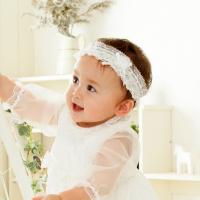 | 華やかなレースや飾りが付いたヘアバンドです。伸縮性のあるレースを使用しているので、頭にやさしくフィットします。可憐で美しいレースが、女の子らしさを演出。ご退院やお披露目はもちろん、普段使いにも活躍するアイテムです。 |