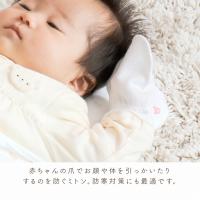 新生児から使えるベビーミトンです。赤ちゃんが顔をかきむしって傷がついてしまうのを防ぎます。柔らかい肌触りのスマイルコットンを使用しています。