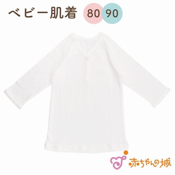 ベビー肌着 シャツ肌着 長袖 赤ちゃん ベビー 80 90 日本製 サイズ肌着 長袖ワンボタン かぶり 綿100% 長袖シャツ 赤ちゃんの城