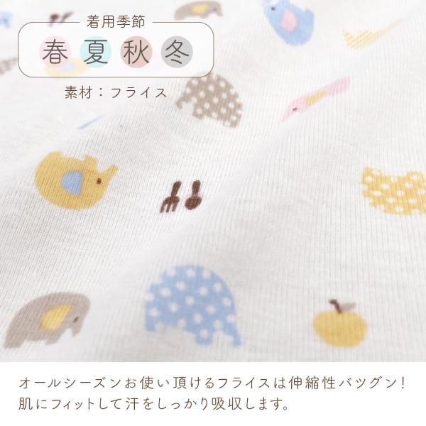 伸縮性に優れたフライス素材を使用。 肌にフィットして汗をしっかり吸収します。 寝かせたままでもお着替えラクチンな前開きタイプです。