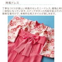 | 着付けも簡単な袴風のセレモニードレスです。鮮やかなピンクと女の子らしい梅の花柄がとっても華やかなちりめんを使用。スナップボタンと内紐を結ぶだけの簡単な着付けで、本格的な和スタイルが楽しめます。お揃いの髪飾りとフライス素材のツーウェイドレス付きの豪華な3点セットです。お宮参りだけでなく、ご退院やお食い初めなど、赤ちゃんとご家族の大切な記念日を彩ります。 |