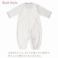 生まれてすぐは足を包むドレスタイプ。 足をばたばた出来るようになったらボタンを留め替えて、カバーオールタイプにもなるツーウェイ仕様です。