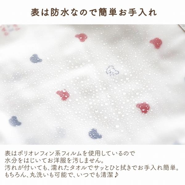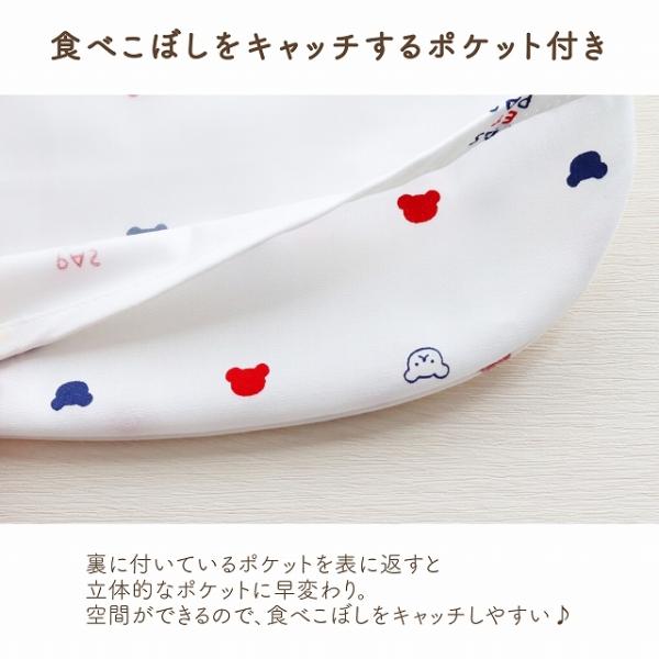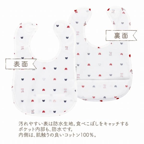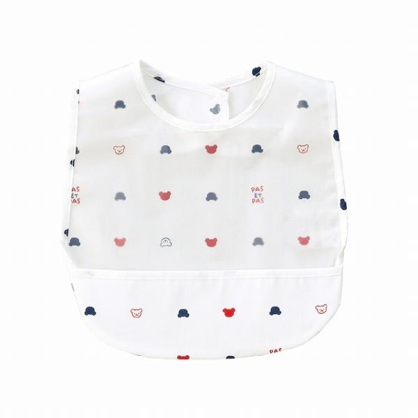 | トリコロールカラーのくまさん柄がかわいいお食事用エプロンです。ポケット付きで食べこぼしをキャッチ。毎日のお食事を楽しくするエプロンです。食べこぼしをキャッチしてお洋服を守ります。 |