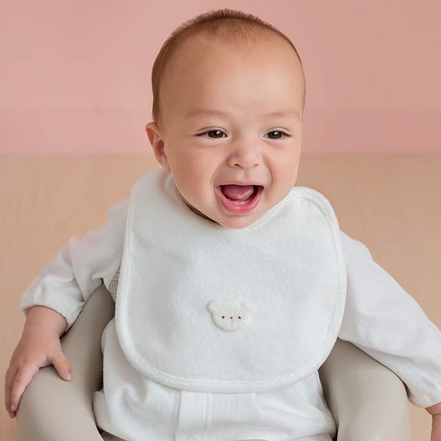 | くまさんモチーフのワンポイントがかわいらしい、シンプルなスタイです。何枚あっても便利なスタイは、出産準備の必需品。ちょっとしたプレゼントにも喜ばれる人気アイテムです。 |