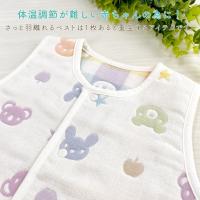 優しい色合いの動物柄が可愛い、男の子にも女の子にも人気のデザインです。手軽に羽織れるベストは、お外でも室内でも、赤ちゃんの体温調節にとても便利なアイテムです。