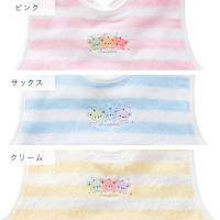 | パステルカラーのボーダー柄がさわやかなエプロンです。ふわふわのタオル素材は肌触りがよく吸水性も抜群です。 毎日のお食事を楽しくするエプロンです。食べこぼしからお洋服を守ります。 |