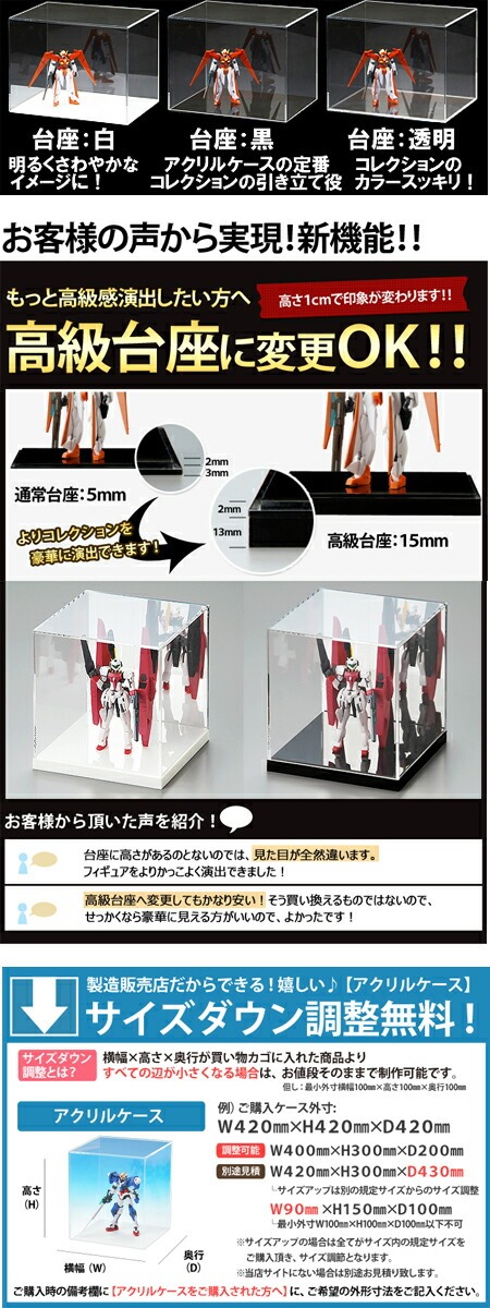 ◆(透明)背面白・台座ありアクリルケースサイズ表◆