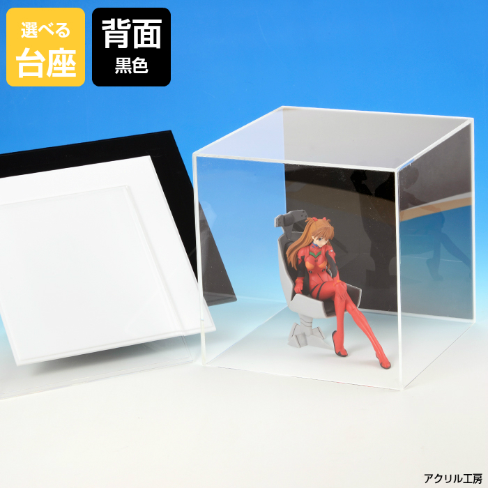 アクリルケース 透明 W500mm H500mm D500mm【台座あり】背面黒 コレクションケース ディスプレイケース フィギュアケース 大型ケース 展示