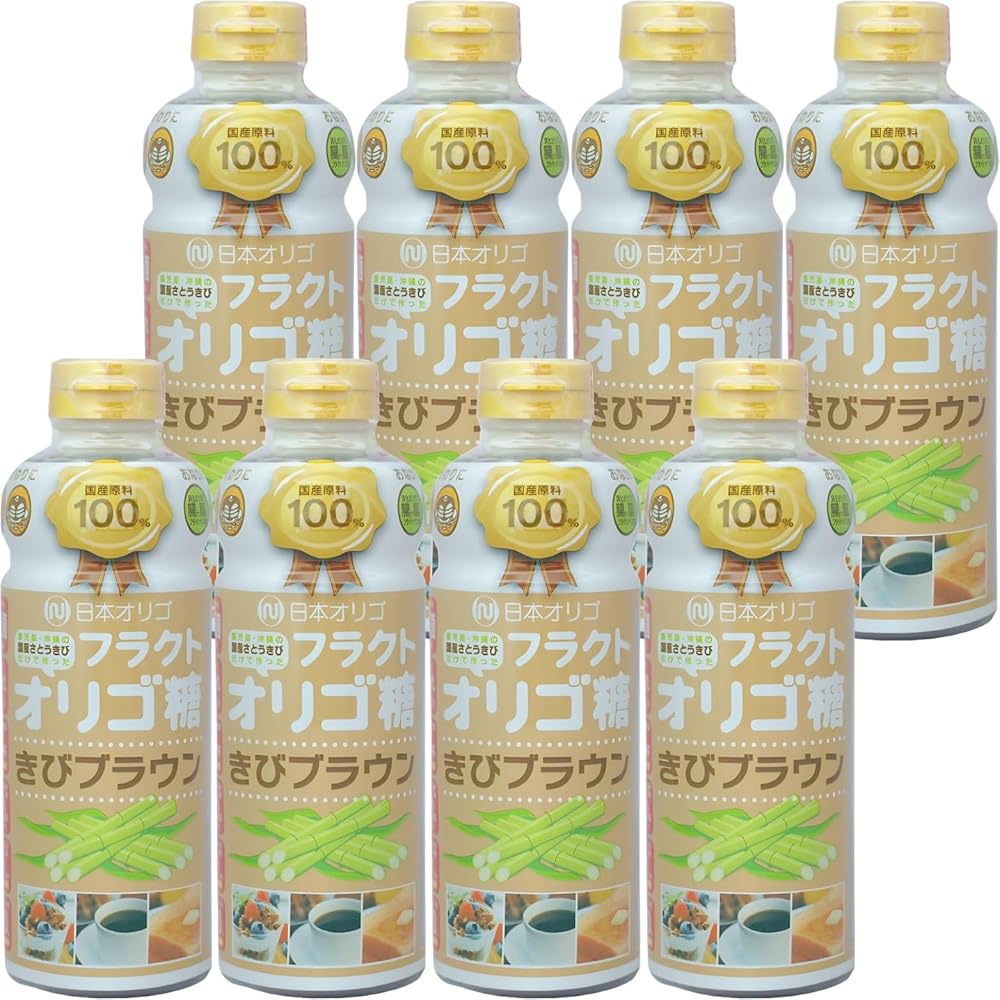 日本オリゴ フラクトオリゴ糖 きびブラウン 700g 8本 シロップ 液体 無添加 国産 オリゴ糖 血糖値 便秘 ヨーグルト 純度 お菓子 サトウキビ 甘味料 腸活 (きび8)