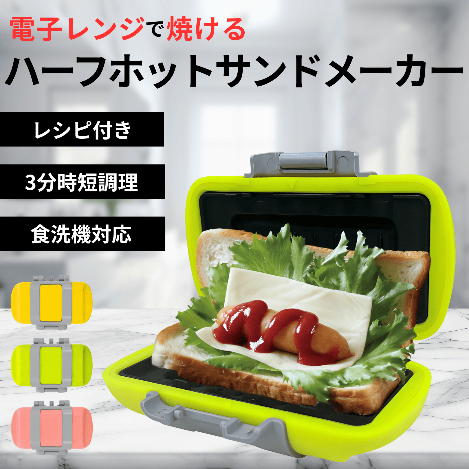 サクセスアジア ホットサンドメーカー ハーフ レシピ レンジクッキング 電子レンジ調理器 トースター ホットサンド ハーフホットサンド 電気 お弁当 (グリーン)