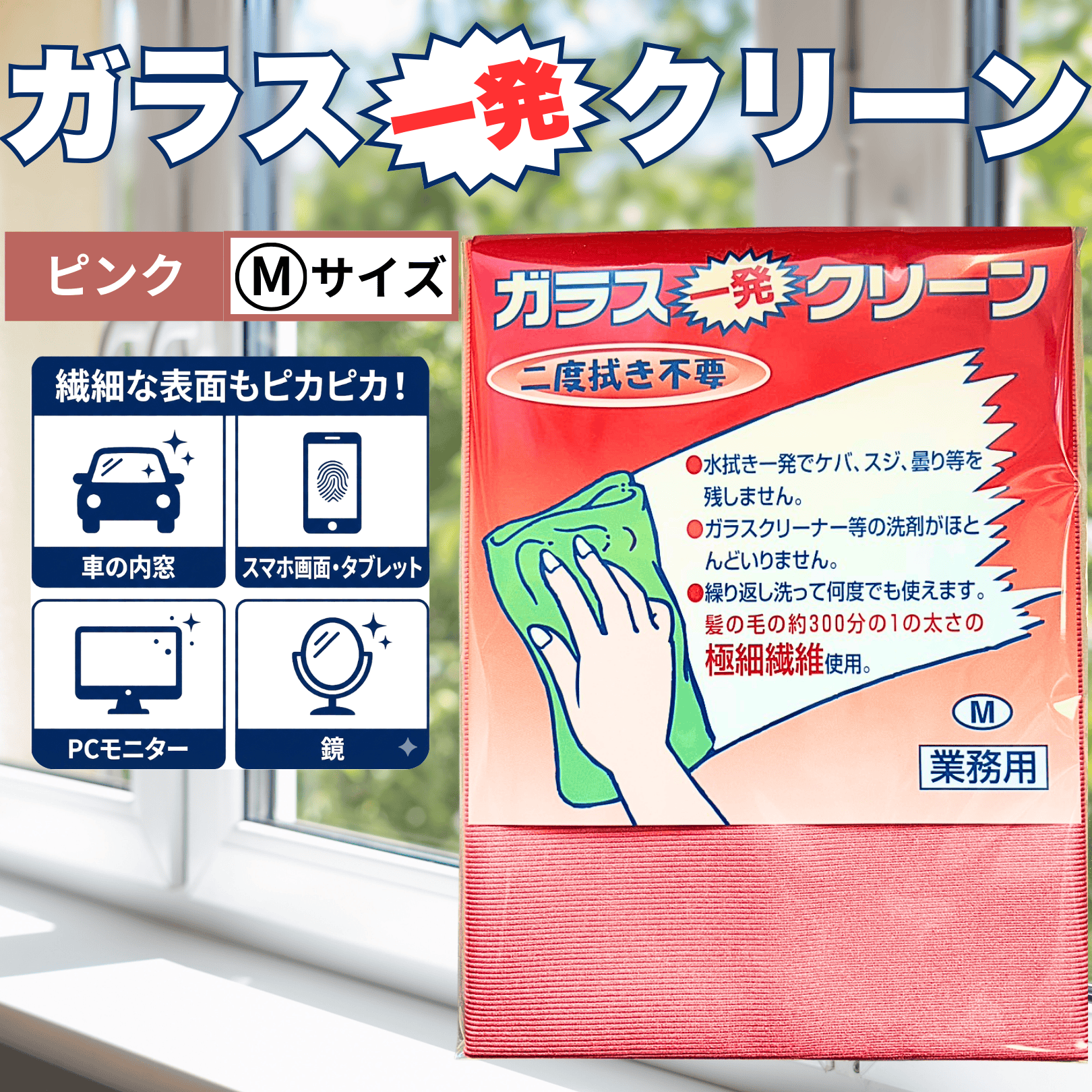 ガラス一発クリーン M リスダンケミカル マイクロファイバー クロス タオル 車 内窓 洗車 業務用 汚れ落とし 車内 ダスター ピンク (ガラス一発 ピンク M 1)