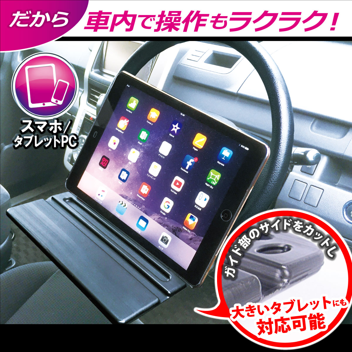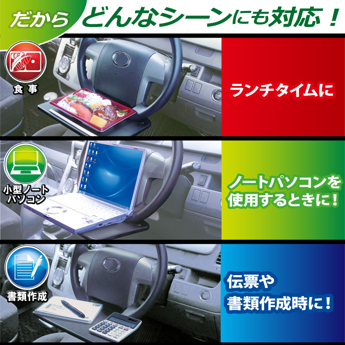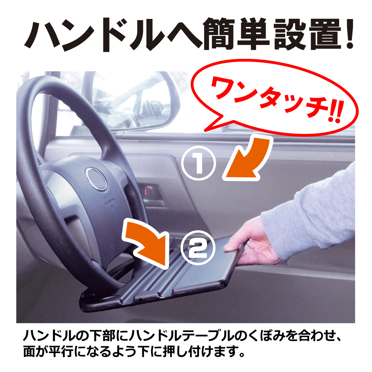 ハンドルテーブル 車 車中泊 営業 外回り 休憩 お弁当 軽食 タブレット PC