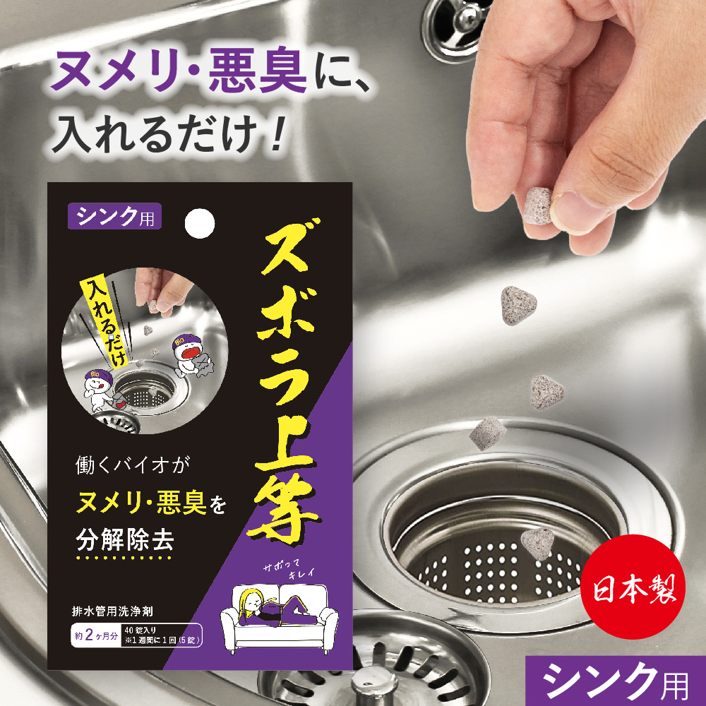 排水口 掃除 におい 掃除 洗剤 固形 タブレット 日本製 ズボラ上等 シンクの排水口用 40錠入 爆買