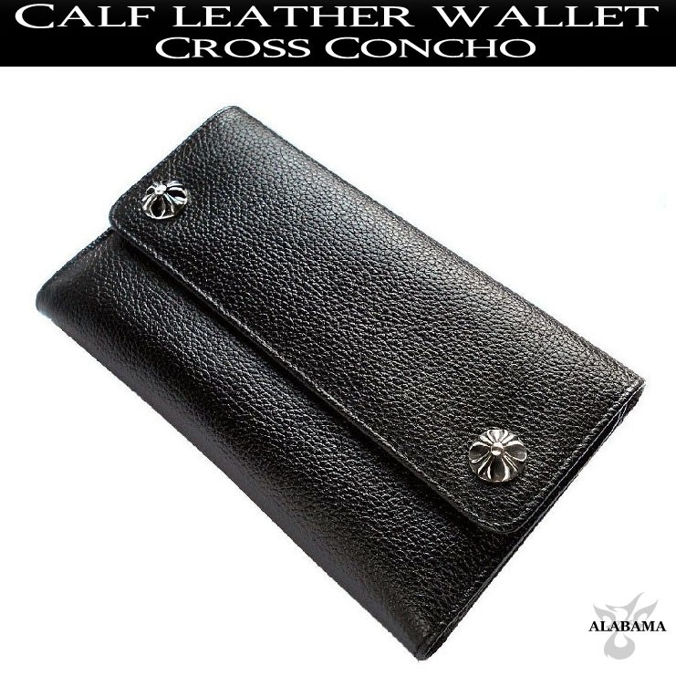 長財布 メンズ 本革 三つ折り カーフレザー ロングウォレット クロス モチーフ
