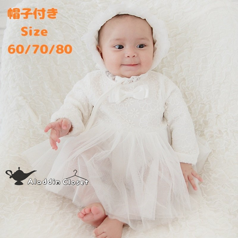 セレモニードレス 新生児 女の子 60 70 80 ベビードレス ワンピース 長袖 春 夏 秋 冬 通年用