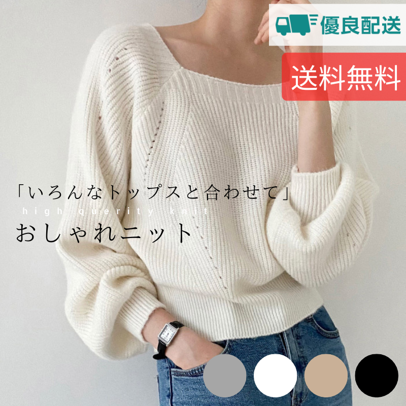 おしゃれ セーター ニット レディース 秋冬 長袖 スクエアネック セーター オフィス きれいめ バルーンスリーブ トップス 30代 40代 50代