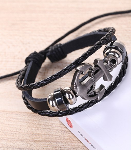レザーブレスレット ブレスレット アクセサリー 皮革 錨 メンズ レディース 長さ調整可能 脱着簡単 いかり アンカーA