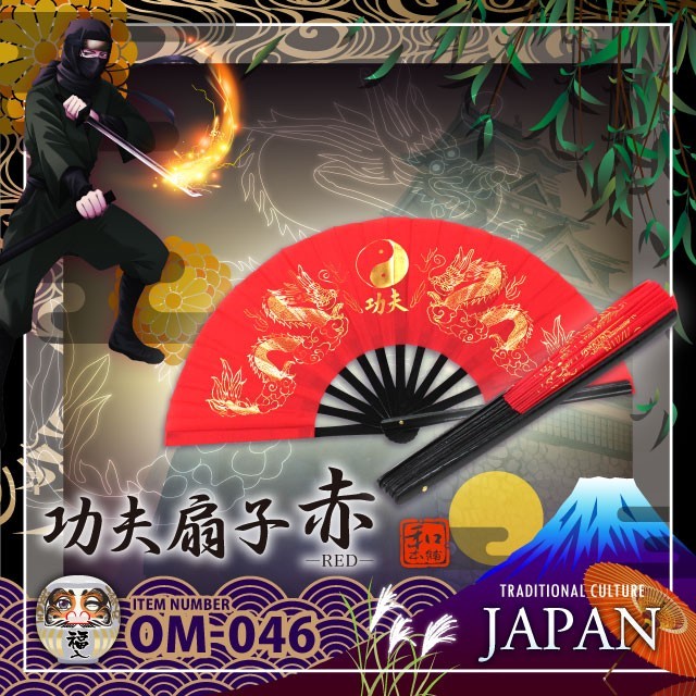 和ごころお土産シリーズ (侍・忍者コレクション) 功夫扇子 赤 (OM-046) (ゆうパケット対応) 日本のおみやげ1010004402om0460