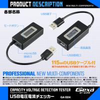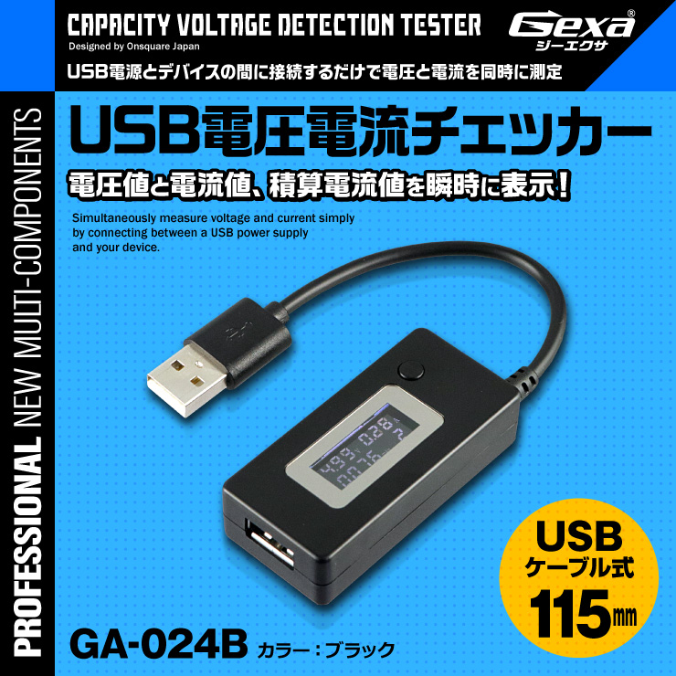 ジイエクサ Gexa USB 電流 電圧 チェッカー 積算機能搭載 電圧値 電流値 測定 テスター microUSB対応 USBケーブル式 GA-024B ブラック (ゆうパケット対応)