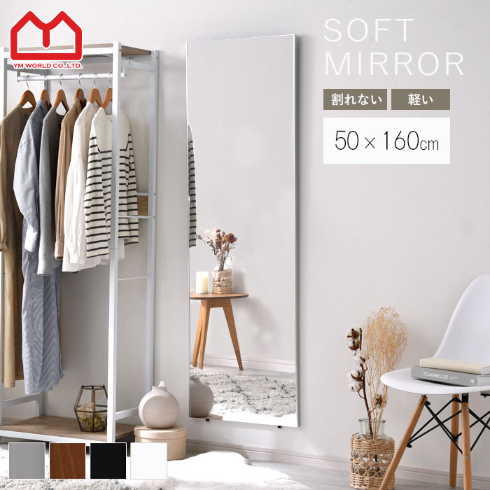 ミラー 割れない 鏡 幅50cm 50×160 ソフトミラー 姿見 軽量 姿見鏡 全身 壁掛け かがみ 割れない鏡 全身鏡 ウォールミラー スリムミラー フィルムミラー