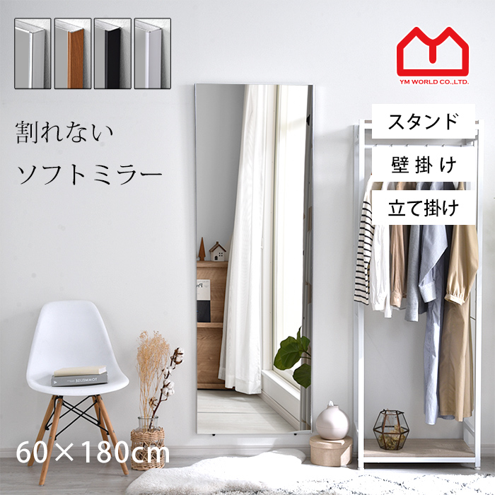 割れない鏡 軽量 スタンドミラー 幅60 全身鏡 姿見 大型 軽い 割れない 全身 おしゃれ ソフトミラー ウォールミラー ミラー 鏡 大きい フィルムミラー 玄関鏡