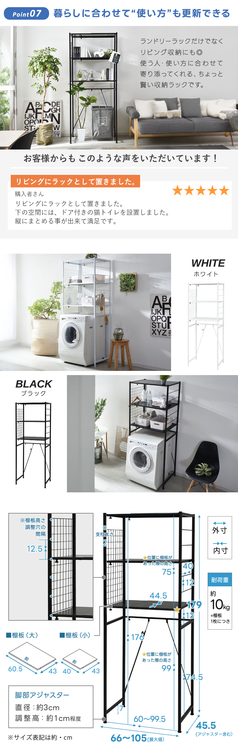 外形寸法(最大値):(約)幅66〜105cm×奥行き45.5cm×高さ179cm
