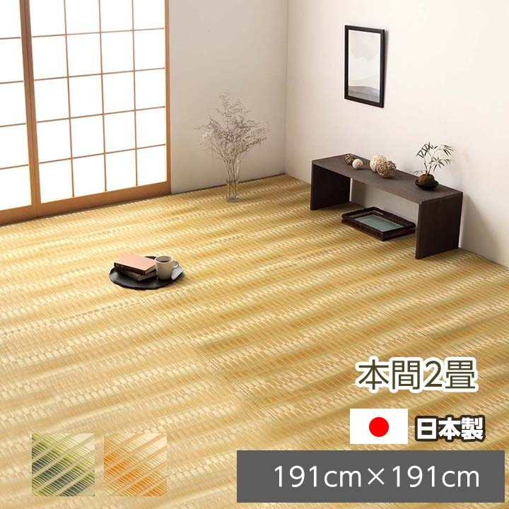 カーペット 正方形 日本製 国産 完成品 本間2畳(約191×191cm) い草調 ラグ 国産 洗えるイ草調 PP カーペット 上敷 い草調ラグ いぐさ調 ござ 茣蓙