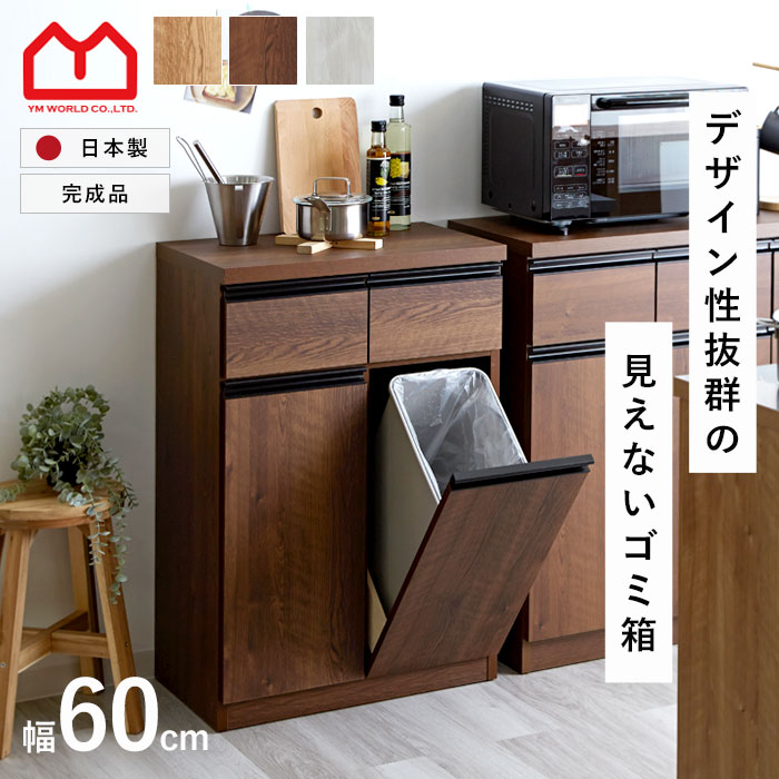 キッチンカウンター ゴミ箱 国産 完成品 ペールカウンター ダストボックス レンジ台 キッチン収納 食器棚 幅60 60幅 おしゃれ スリム 北欧 キッチンボード