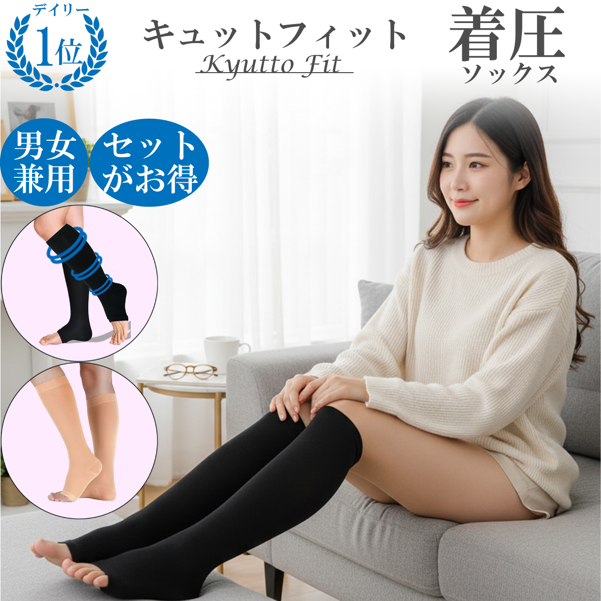 着圧ソックス 加圧ソックス 靴下 下肢静脈瘤 レギンス むくみ 弾性ストッキング おすすめ 女性 男性 加圧 ハイソックス キュットフィット 就寝 夜間 大きい