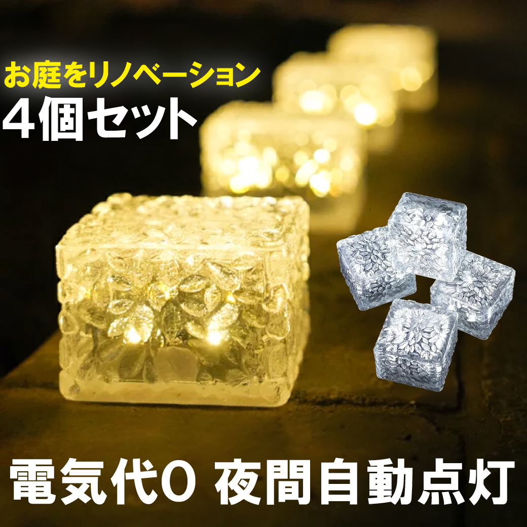 ソーラーライト 屋外 LED ガーデン 防水 4個セット 庭 イルミネーション センサーライト 防犯 花壇 四角 おしゃれ 明るい 置き型 ポイント消化