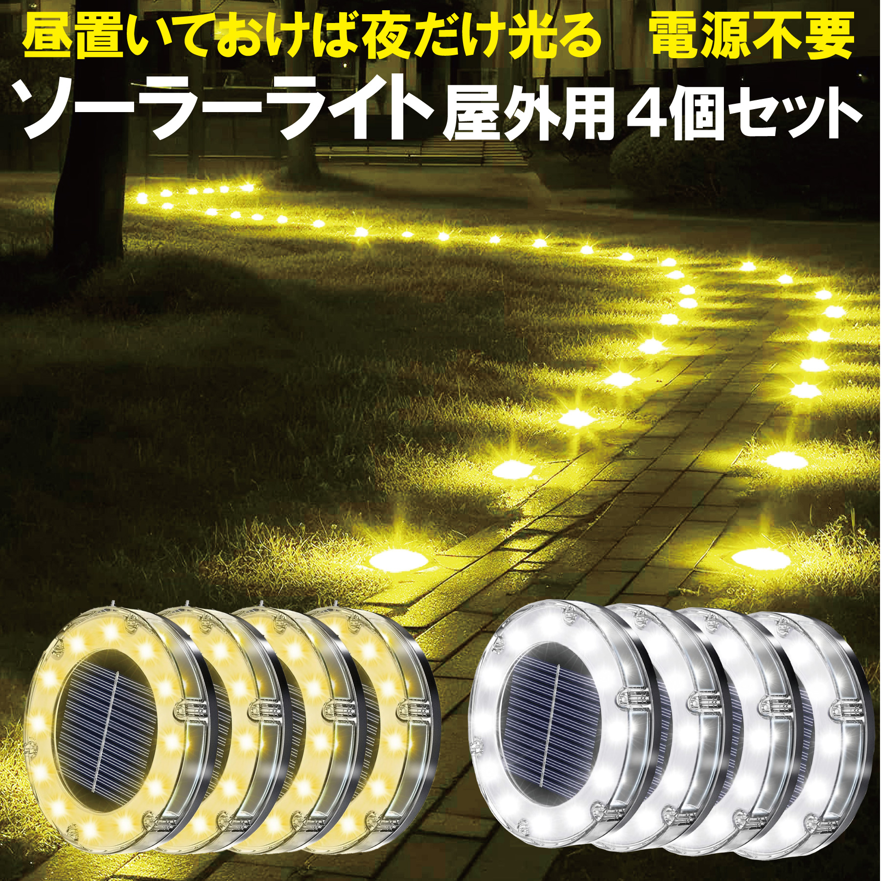 ソーラーライト 屋外 LED ガーデン 防水 4個セット 庭 イルミネーション センサーライト 防犯 花壇 円形 おしゃれ 明るい 置き型 ポイント消化