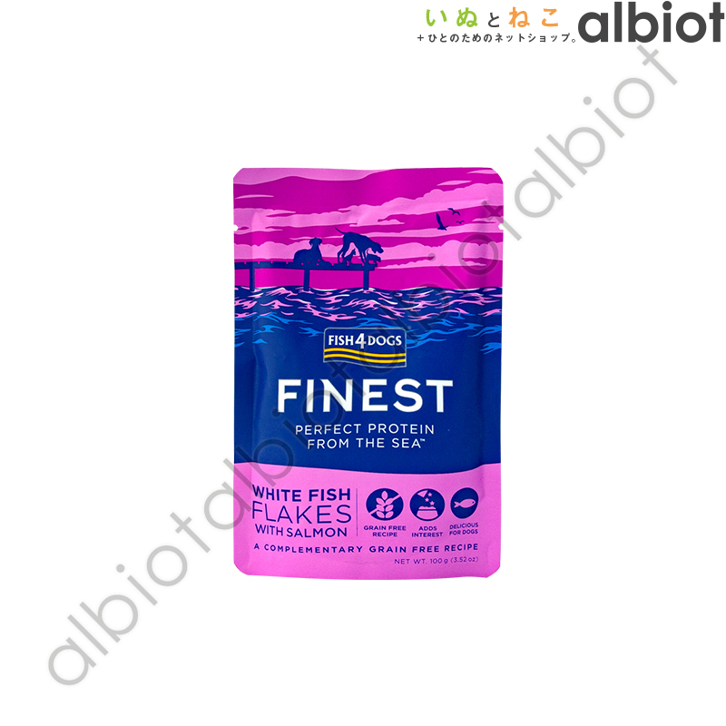 原材料に新鮮なホワイトフィッシュとサーモンを使用したフレークタイプの新食感スーパープレミアムウェットフードです。