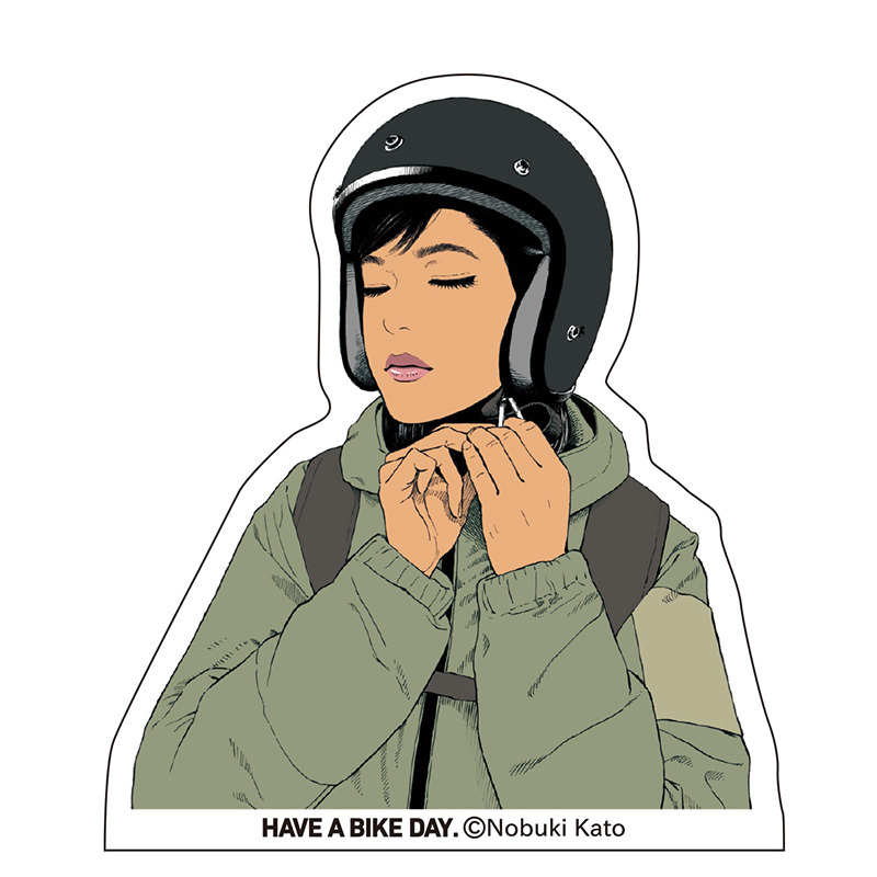 「バイクのある日常」をテーマにした「HAVE A BIKE DAY.」イラストバージョンは加藤ノブキ氏描き下ろしのイラストをそのままステッカーにしました。