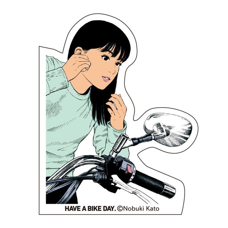 「バイクのある日常」をテーマにした「HAVE A BIKE DAY.」イラストバージョンは加藤ノブキ氏描き下ろしのイラストをそのままステッカーにしました。