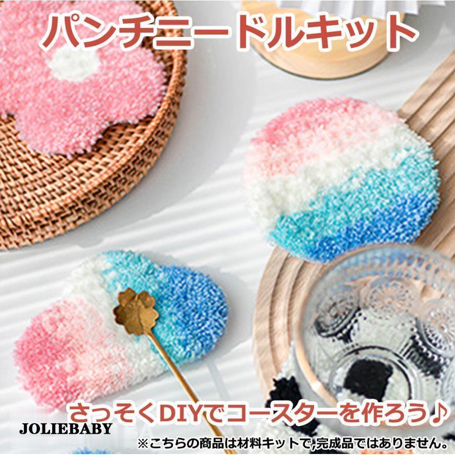 パンチニードル 材料道具キット コースター材料キット ニードルパンチ 刺繍 手芸材料セット 刺繍枠 ニードルペン 図案 布セット 動画サポート 毛糸