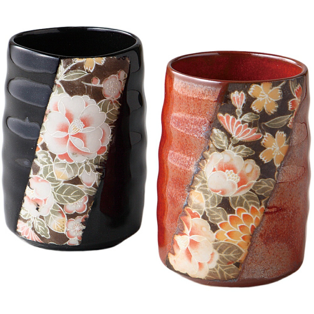 ペア湯呑 夫婦湯呑 加賀友禅 組湯呑 美濃焼 日本製 陶器 ギフト プレゼント箱入り 食洗機対応 レンジ対応