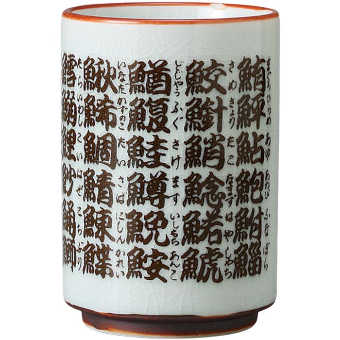 湯呑 寿司湯呑 魚字大寿司湯呑 陶器 美濃焼 日本製 食洗機対応 レンジ対応 寿司屋 すし屋 お土産 おみやげ 大湯呑