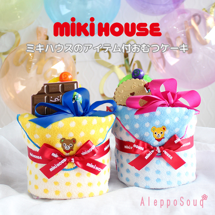 おむつケーキ ミキハウス1段 ミニタオル 歯固め付き ダイパーケーキ 送料無料 (一部地域除く) 名入れ可能 出産祝い B60