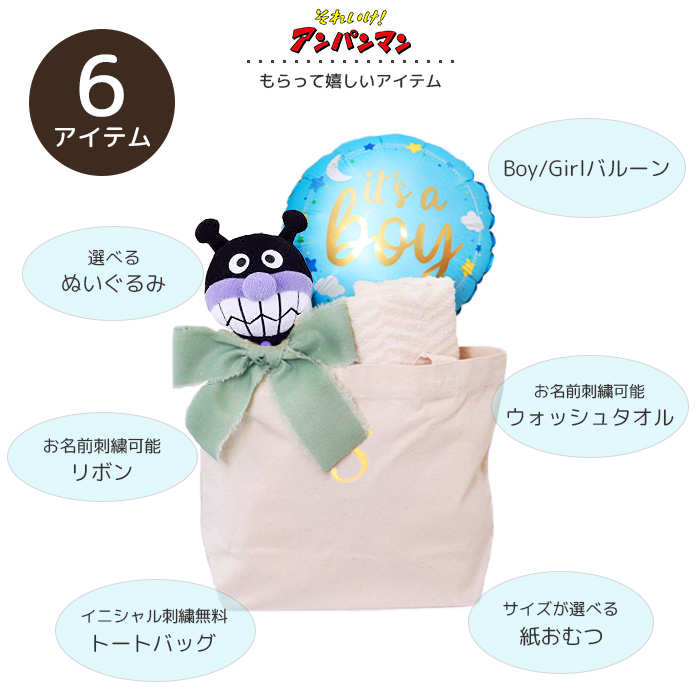 出産祝い アンパンマン ぬいぐるみ おむつバッグ トートバッグ プリちぃビーンズ 送料無料 ウォッシュタオル ハンドタオル